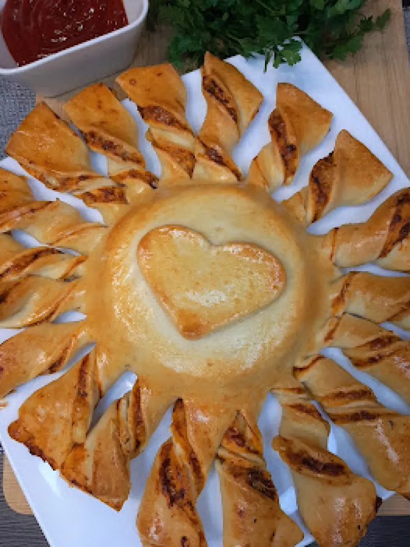 Przepis na pizzę w kształcie słoneczka z odrywanymi bokami oraz przepysznym ciągnącym się serem po środku😍 Coś pysznego!😀https://youtu.be/LFn-G9dCO40Składniki:2 arkusze gotowego ciasta na pizzę1 camembert5 łyżeczek koncentratu pomidorowego1 łyżeczka ziół prowansalskich100 g żółtego startego sera1 jajkoCiasto rozwinąć i wyciąć z każdego arkusza koło za pomocą dużego talerza.Na dużą blaszkę do pieczenia wyłożyć papier do pieczenia, Wykładamy 1 koło, na środek kładziemy camemberta, resztę cias...