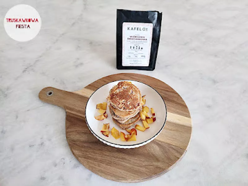 Szybciutkie, delikatne i bogato smakowe placuszki wykorzystaniem naparu z kawy od Kafelov.Składniki:2 jaja10 g erytrytolu50 g mąki gryczanej pełnoziarnistej50 g mąki migdałowej50 ml naparu z kawy o smaku wiśniowo-śmietankowej1/4 łyżeczki proszku do pieczenia50 g śliwki bez pestki50 g nektarynki bez pestki10 ml oleju rzepakowego do smażeniaSposób przygotowania:Jaja utrzeć z erytrytolem na puszystą masę. Dodać oba rodzaje mąk, proszek do pieczenia i napar z kawy. Całość wymieszać. Następnie do...