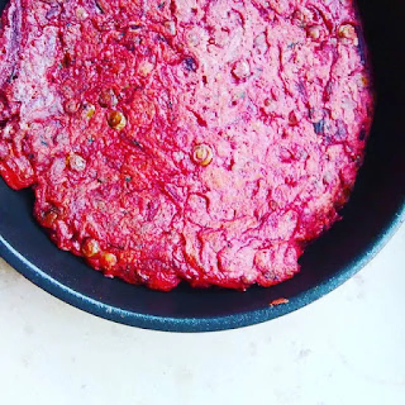 Składniki: - soczewica - buraki - cukinia - jajko - mąka gryczana - cebula - olej kokosowy do smażenia - przyprawy: (pieprz, sól, kolendra)