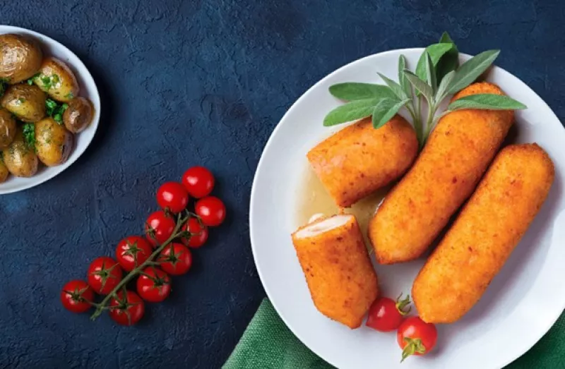 Pyszna sałatka z kurczakiem w chrupiącej panierce, roszponką, serem z niebieską pleśnią i sosem mio…