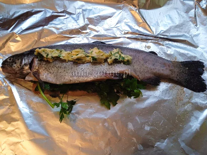 Źródło: https://ania-gotuje.pl/przepis/pstrag-pieczony-z-pietruszka-i-maslem