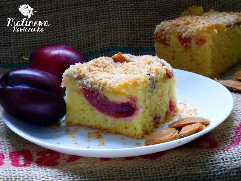 Puszyste ciasto ze śliwkami i chrupiacą posypką
