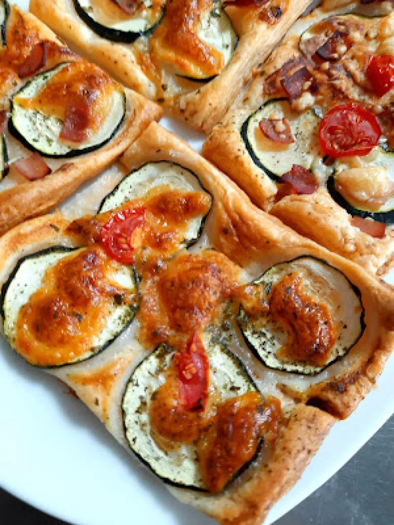 Pyszna przekąska z ciasta francuskiego, cukinii i mozarelli