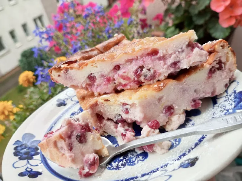 pyszny sernik z czerwoną porzeczką...