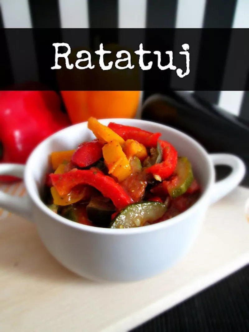 Ratatouille - w Polsce określany jako ratatuj - to danie bezmięsne, którego podstawę stanowią głównie cukinia, bakłażany, papryka i pomidory. Podany na ciepło jako samodzielne danie lub w towarzystwie mięsa, stanowi idealny pomysł na warzywne cudo. Połączenie smaków, ale i kolorów tworzy kulinarną kompozycję, do której za każdym razem wracam z uśmiechem. Składniki: 1 cukinia, 1/2 bakłażana, 1/2 papryki czerwonej, żółtej i zielonej, 1 puszka krojonych pomidorów, 1 czerwona cebula, 3 ząbki czo...