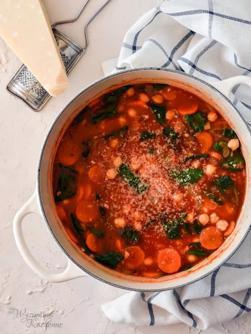 Śródziemnomorska zupa z ciecierzycą i szpinakiem