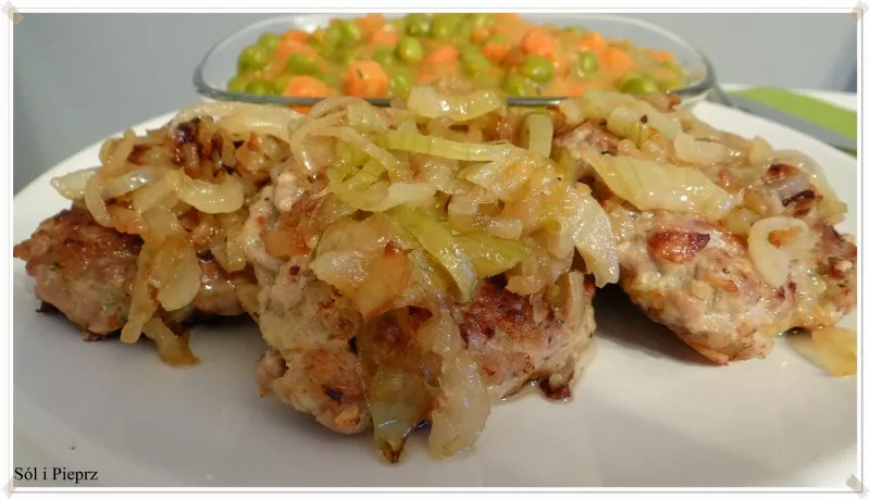 Konkretny obiadek dla bardzo głodnych domowników. Składniki ( 6 kotletów): 500 g mięsa wołowego 1 jajko 3 cebule 1 łyżka ostrej musztardy słodka papryka w proszku majeranek 2 łyżki masła klarowanego ( do cebuli) łyżeczka cukru olej ( lub inny tłuszcz do smażenia) sól, pieprz Mięso siekamy bardzo drobno, wbijamy jajko, dodajemy musztardę. Doprawiamy solą, pieprzem, majerankiem i słodką papryką. Cebulę kroimy w piórka. Smażamy na maśle klarowanym, pod koniec dodajemy cukier. 1/3 cebulki dodajem...