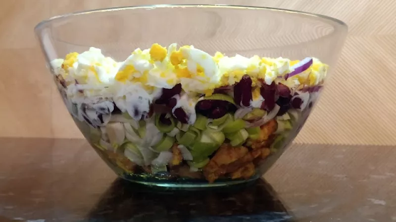 Sałatka warstwowa okolicznościowa z porem i kurczakiem + film