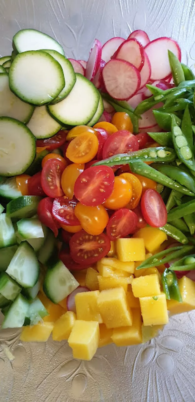 Sałatka warzywna z mango i awokado, z orientalnym sosem