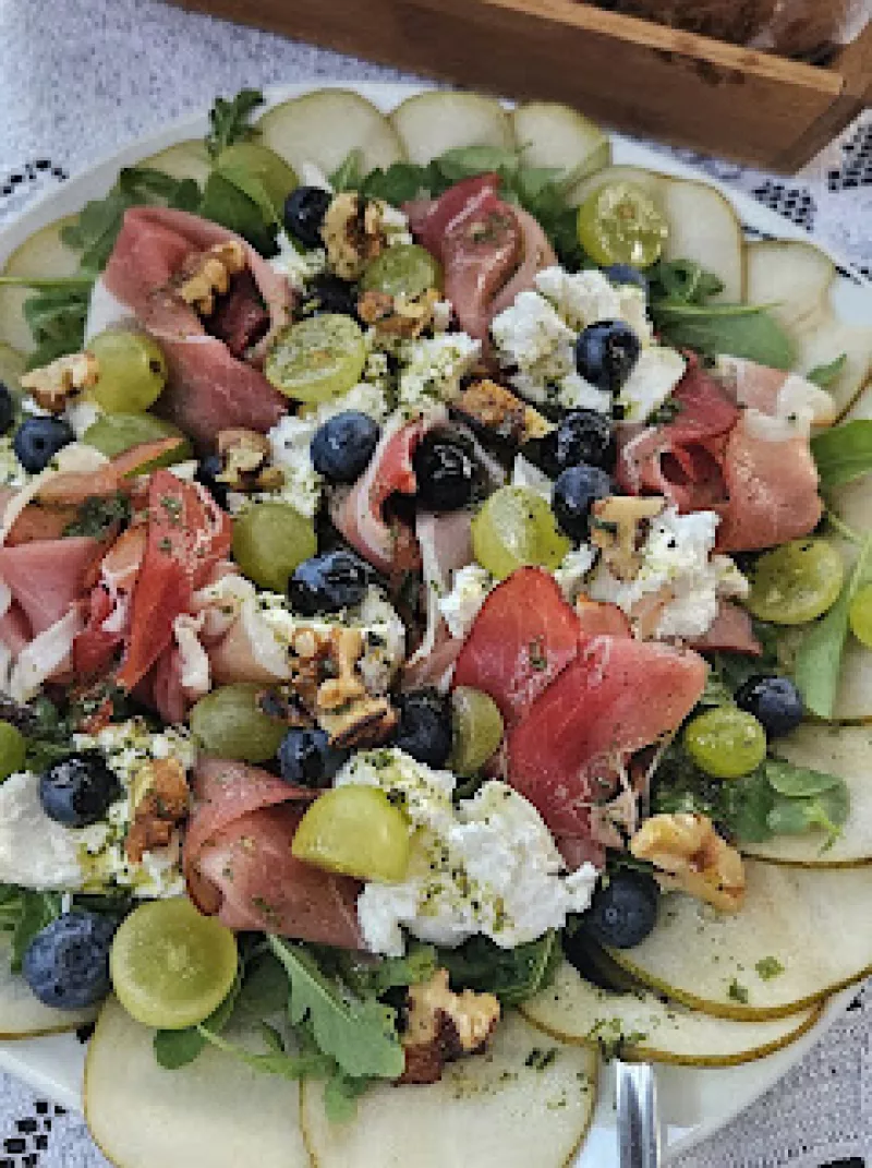 Źródło: https://www.kuchnia-beaty.pl/2025/08/saatka-z-burrata-i-szynka-parmenska.html