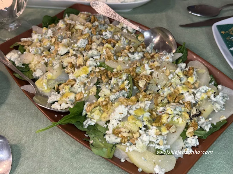 Źródło: https://www.swojskiejedzonko.com/2025/12/saatka-z-gruszka-serem-plesniowym-i.html