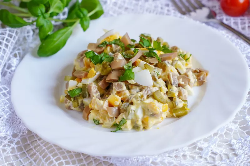 Sałatka z jajkiem i pieczarkami