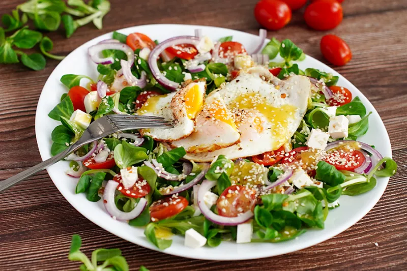Sałatka z jajkiem sadzonym i roszponką