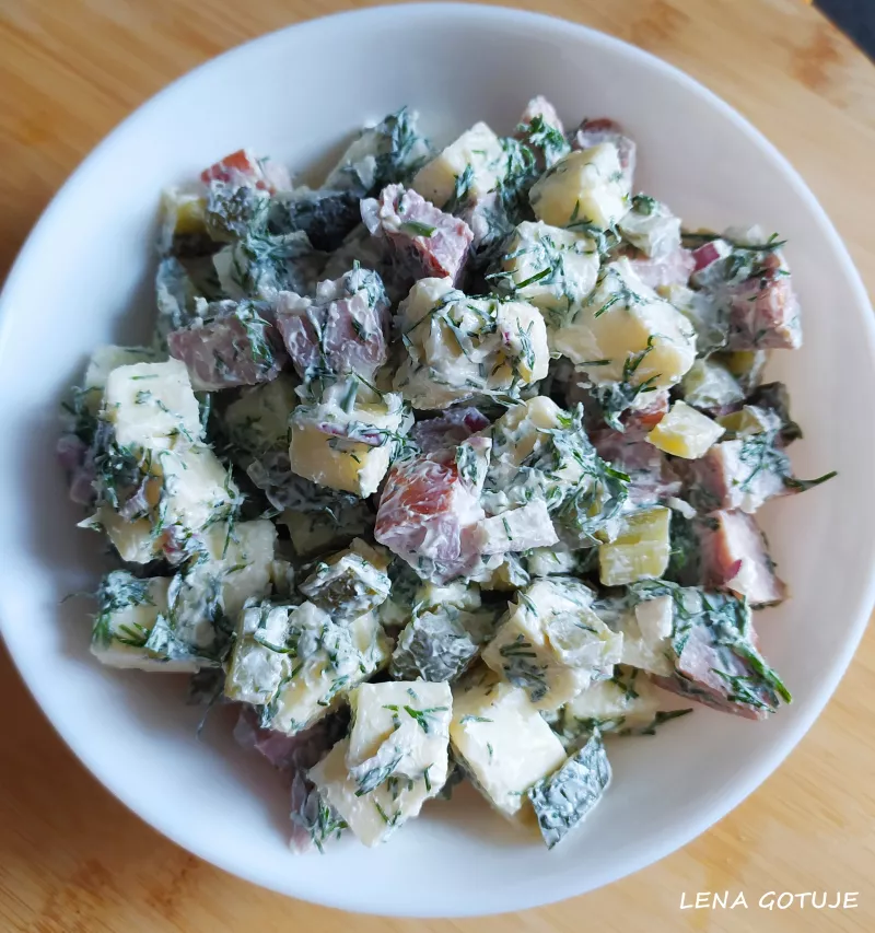 Sałatka z kiełbasą krakowską i serem żółtym