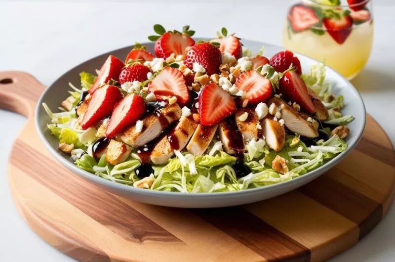 Sałatka z kurczakiem i truskawkami – lekka i pełna smaku Uwielbiam eksperymentować z sałatkami i łączyć składniki, które na pierwszy rzut oka mogą wydawać się nietypowe. Tak właśnie powstała ta sałatka – lekka, soczysta, pełna świeżości i kontrastów smakowych. Grillowany kurczak, słodkie truskawki, słony ser feta, chrupiące orzechy i aromatyczny dressing balsamiczny – to połączenie, które smakuje jak lato na talerzu. Pin Print Sałatka z kurczakiem i truskawkamiCourse: Sałatki, Szybkie daniaid...