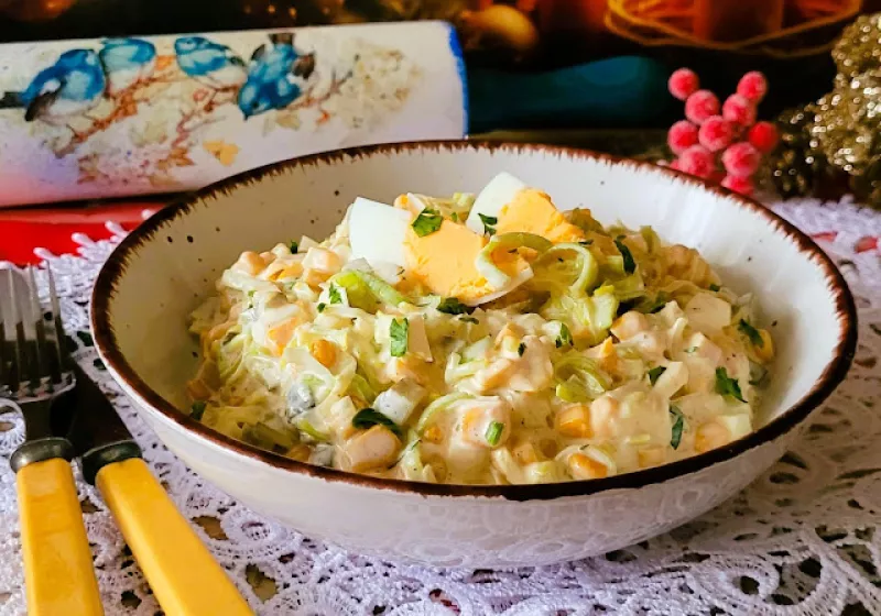 Szybka sałatka z pora i jajek, doskonała na kolację i na przyjęcia. Proste składniki – jajka, kukur…