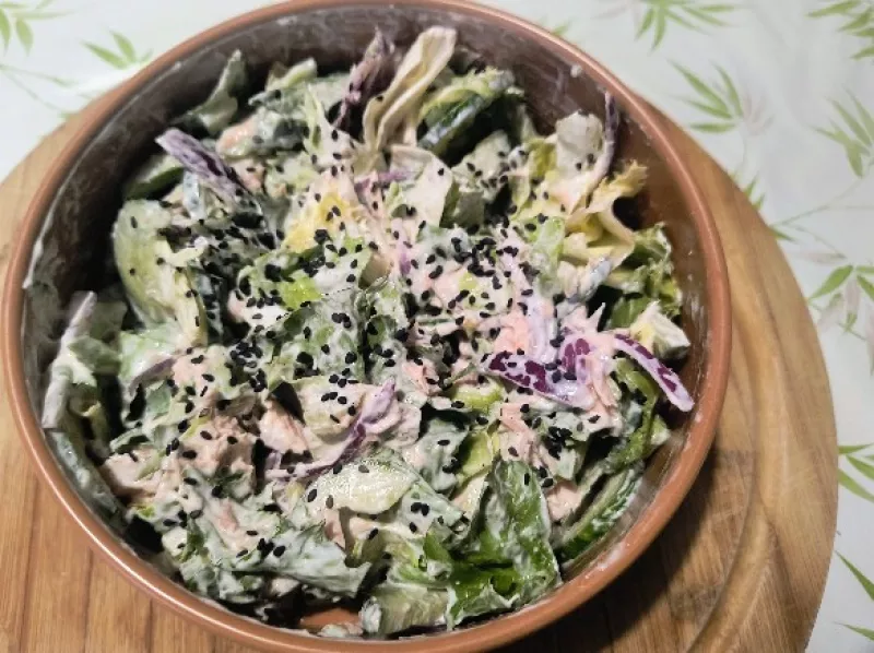 Sałatka z pstrągiem łososiowym i sezamem