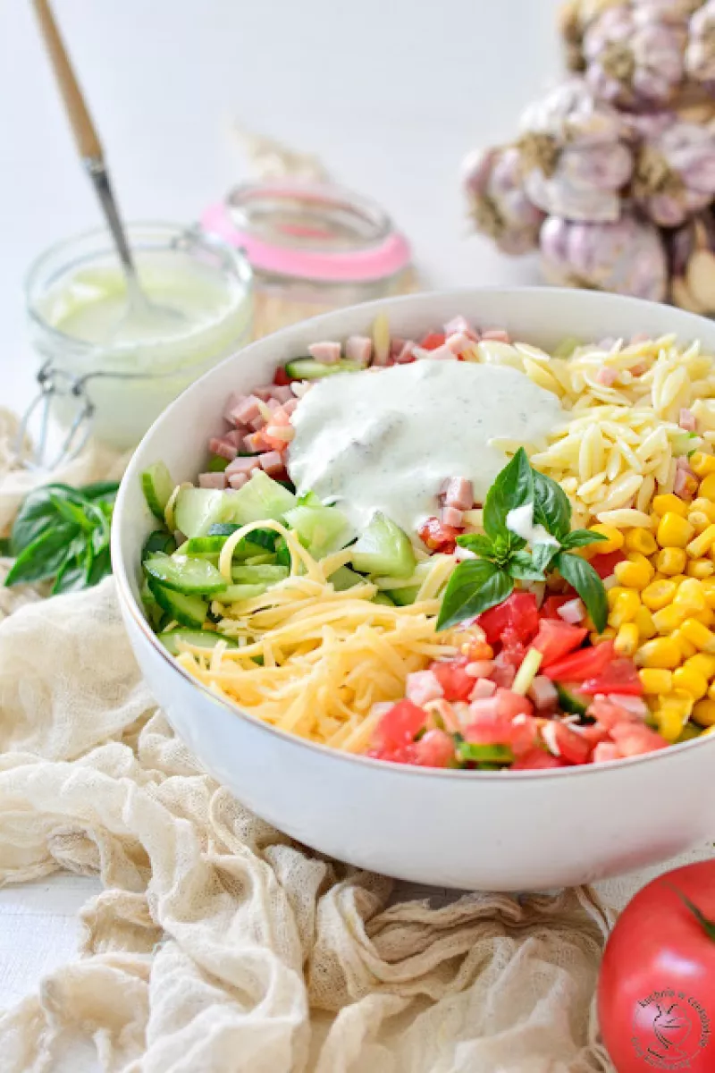 Już od jakiegoś czasu cieszy się popularnością na moim Instagramie, dziś także dostępna na blogu- sałatka "100 gram". Prosta, sycąca i z lekkim bazyliowym twistem. Idealna na wszelkie okazje czy imprezy rodzinne. Każdego składnika potrzebujecie dokładnie 100g- nie licząc oczywiście przypraw :)Składniki:100g makaronu ryżowego100g szynki konserwowej100g sera żółtego100g świeżego ogórka100g pomidorów100g kukurydzySos:100g majonezu100g jogurtu naturalnego3 ząbki czosnkugarść świeżej bazyliisól, p...