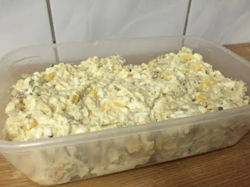 Bardzo łatwa i szybka w przygotowaniu sałatka z tuńczyka, która posmakuje każdemu!:) Ten i inne przepisy znajdą Państwo również w menu głównym Sałatka z tuńczyka Gotowa sałatka, smacznego Składniki: 160 g tuńczyka ( nie polecam tuńczyków rozdrobnionych) 5-6 ogórków kiszonych 170 g puszka kukurydzy 6 jajek 2-3 łyżki majonezu sól pieprz Przygotowanie: Z tuńczyka odlewamy sos i rozdrabniamy go widelcem w dowolnym naczyniu. Między czasie gotujemy jajka na twardo. Ogórki ścieramy na ...