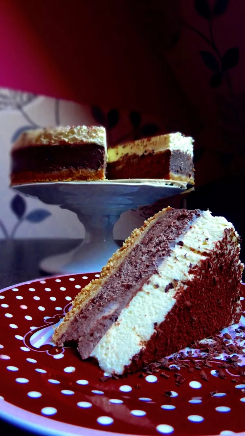 Sernik czekoladowy i mus z białej czekolady
