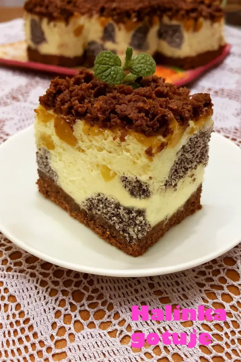 Źródło: https://halinkagotuje.pl/2025/12/01/sernnik-laciaty-z-brzoskwiniami-i-makiem