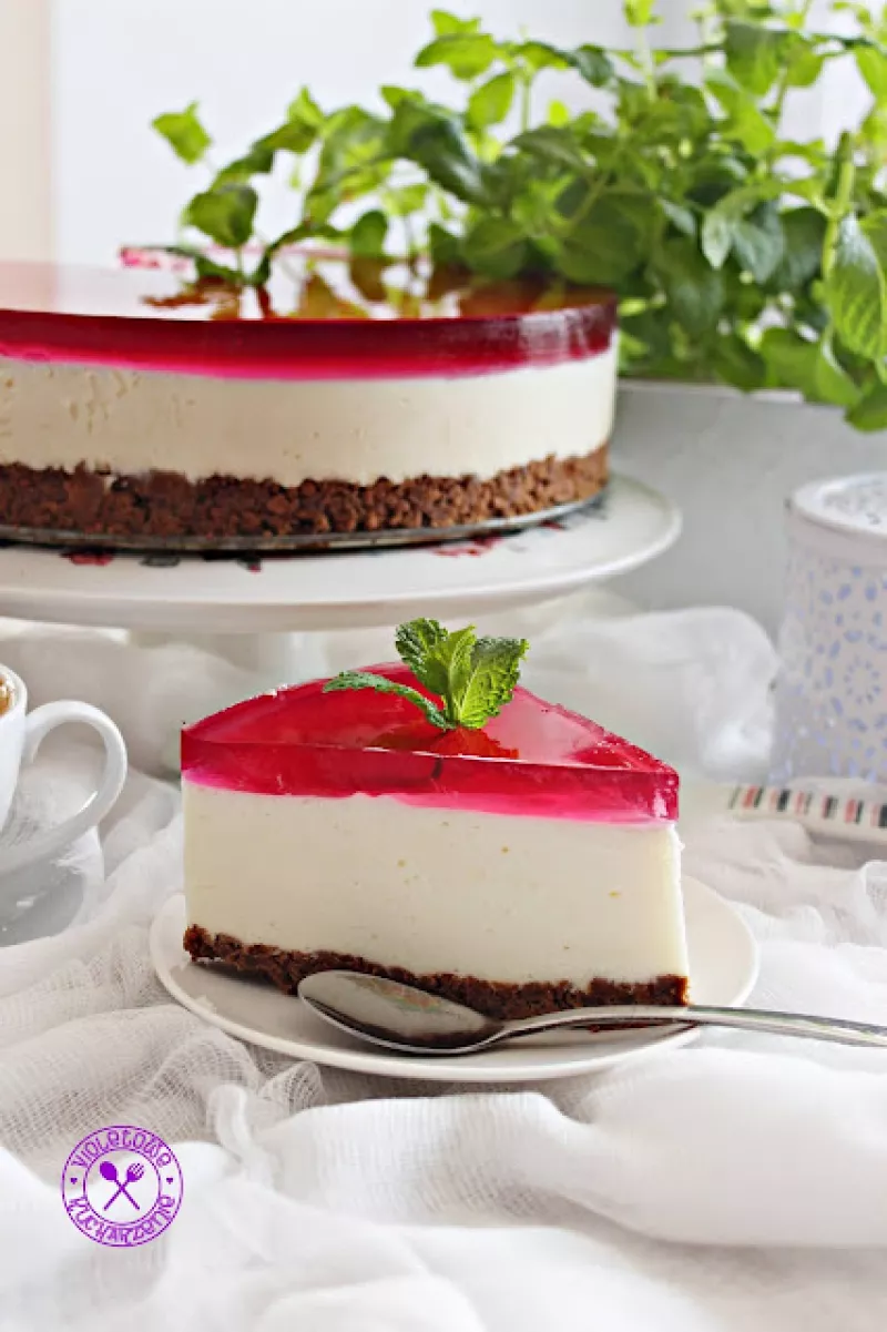 Sernik na zimno z białą czekoladą i galaretką malinową