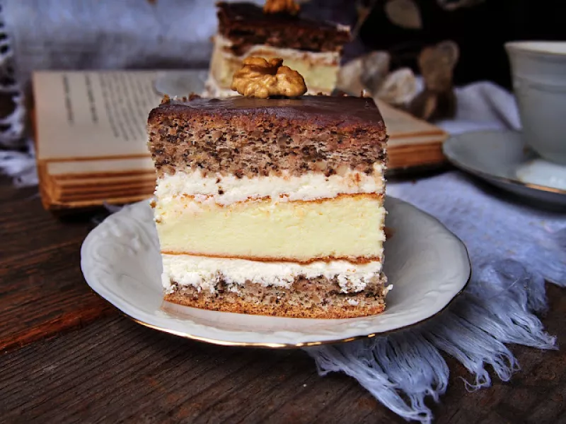 Ten sernik widziałam już kilka razy, poszukując inspiracji na nowe desery. Jednak ciągle nie po drodze mi było aby go upiec, ale jak widzicie doczekał się. Przyznam Wam szczerze — to wypiek dość pracochłonny i wymagający odrobiny cierpliwości. Trzeba upiec oddzielnie biszkopty orzechowe, oddzielnie zrobić sernik j jeszcze utrzeć krem. Trochę pracy, zgoda — ale za to jaki efekt! Warstwy komponują się bardzo elegancko i cieszą oko, a smaki komponują się po prostu idealnie. Wystarczy jeden kęs,...