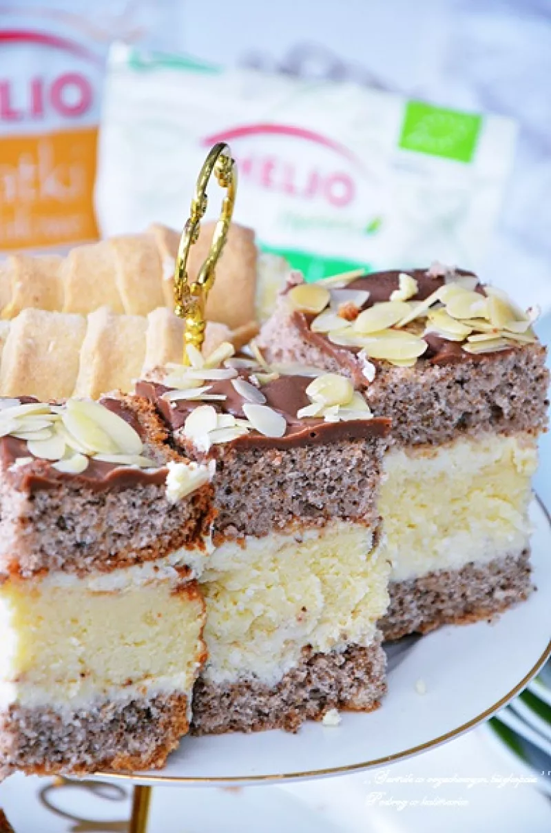 Wykwintny, elegancki sernik na specjalne okazje. Pyszny i wilgotny sernik w mocno orzechowym cieście z kremem na bazie kwaśnej śmietany. Dzięki uprzejmości oraz zaufaniu firmy Helio otrzymałam kolejny raz przesyłkę pełną znakomitych produktów z których powstało pyszne ciasto. Składniki: Biszkopt: 100 g zmielonych orzechów włoskich Helio1/2 szklanki mąki pszennej1/2 szklanki mąki ziemniaczanej1 łyżeczka proszku do pieczenia1/2 szklanki cukru6 jajek100 g masłaszczypta soli Masa serowa: 1 kg bia...