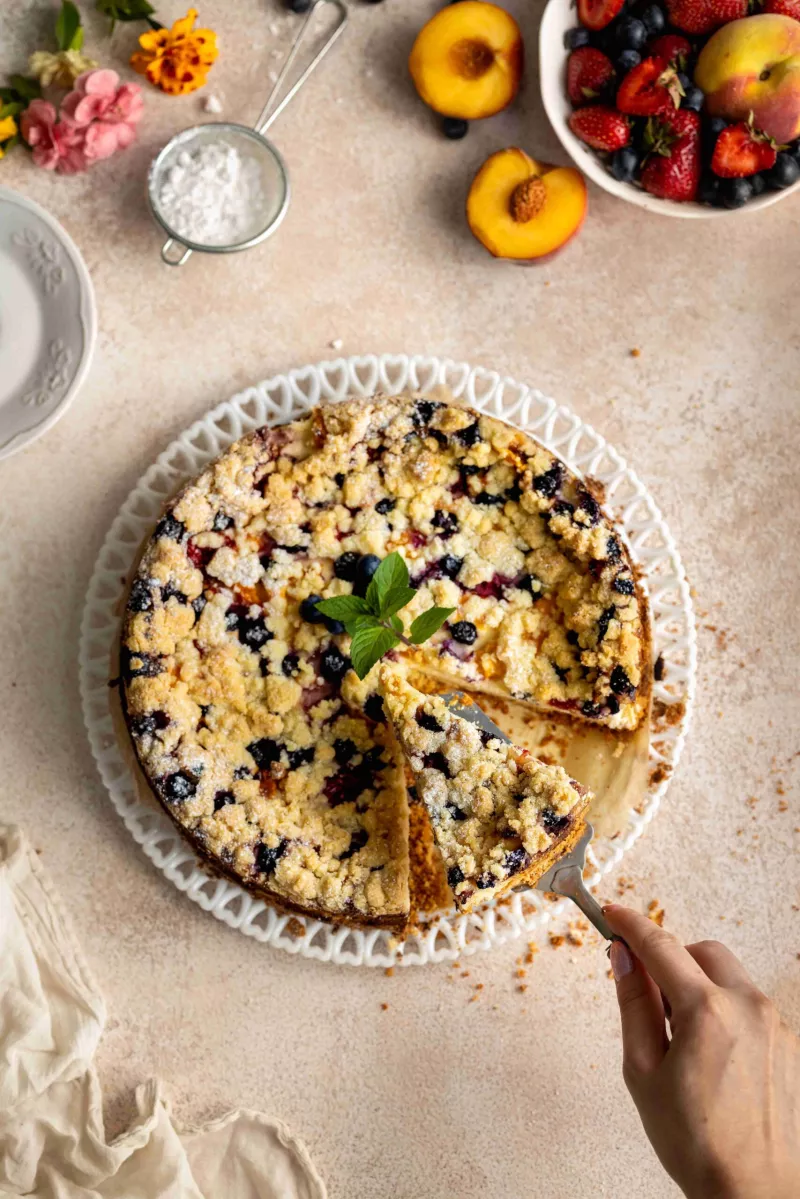 Źródło: https://cytrynowababeczka.pl/sernik-z-kruszonka-i-owocami