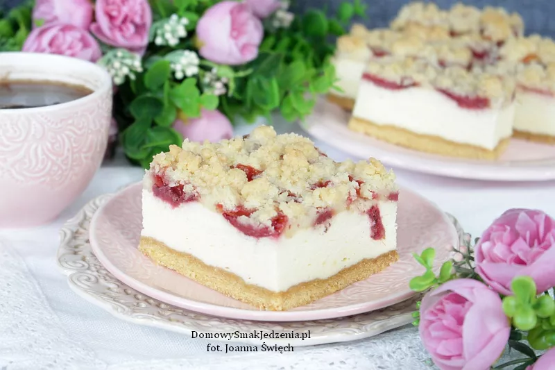 Źródło: https://domowysmakjedzenia.pl/2025/06/09/sernik-z-truskawkami-i-kruszonka-2