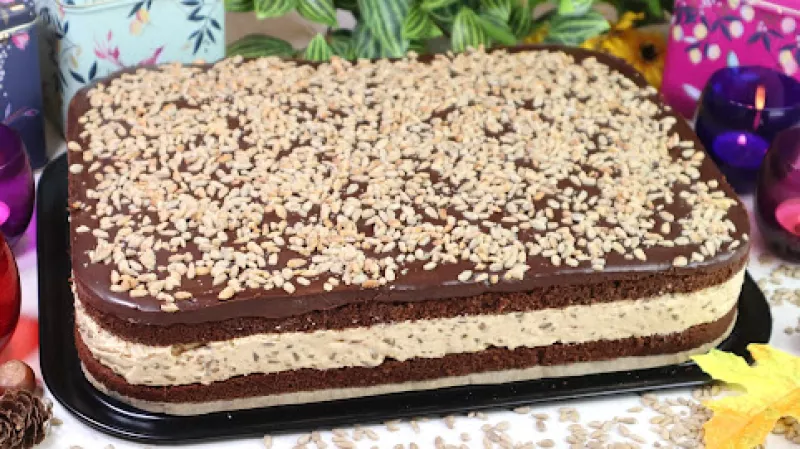 Dzisiaj przychodzę do Was z przepisem na pyszne ciasto, które ozdobi niejedną rodzinną uroczystość. Tym razem, na nasze stoły trafi słonecznikowiec, czyli puszysty kakaowy biszkopt przełożony gładkim kremem kajmakowym z dodatkiem prażonego słonecznika. Puszysty, wilgotny biszkopt łączy w sobie subtelny smak kakao i delikatne, ale wyraźnie wyczuwalne nuty kawowe. Smakiem przewodnim kremu jest oczywiście karmel, wspierany przez prażone ziarna, które wprowadzają do całości subtelny, orzechowy ...