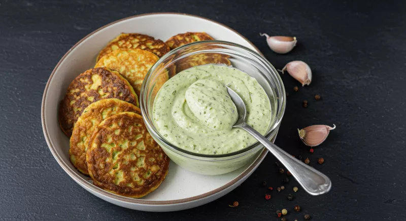 Sos do placków z cukinii, który totalnie odmieni ich smak – czosnkowo-ziołowa petarda