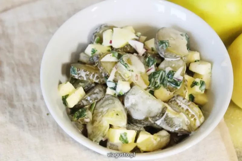 Świeża i chrupiąca surówka z ogórków kiszonych z jabłkiem i jogurtem naturalnym. Jest lekka, zdrowa i pasuje do większości obiadów – od ziemniaków, przez kasze, aż po dania mięsne, czy burgery. To surówka, którą robi się dosłownie w 5 minut! Spis treści:Przepis na surówkę z ogórków kiszonychIle kalorii ma porcja surówki z ogórków kiszonych?Porady i zamiennikiNajczęściej zadawane pytania (FAQ)Jakie jabłko najlepiej użyć?Czy surówkę można przygotować wcześniej?Czy można użyć jogurtu greckiego z...