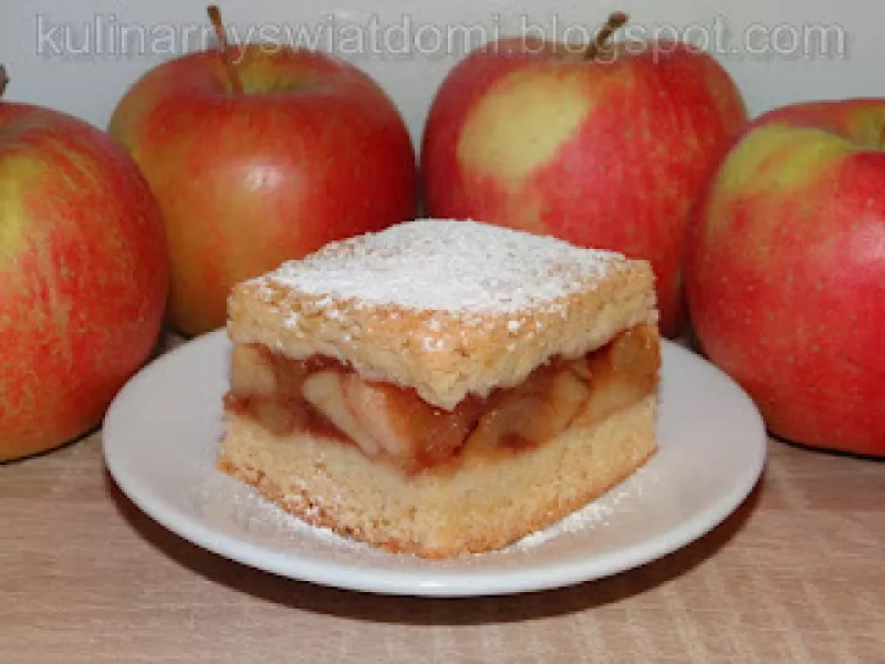 Źródło: http://kulinarnyswiatdomi.blogspot.com/2018/10/szarlotka-na-kruchym-ciescie.html