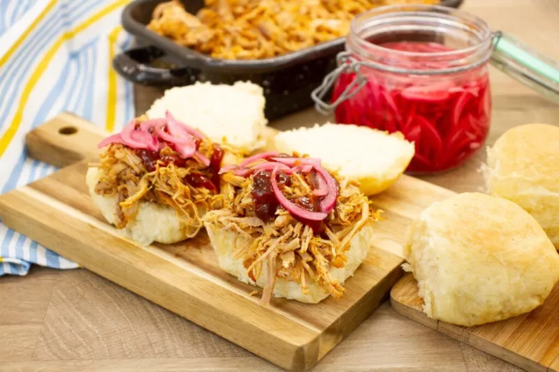 Szarpana wieprzowina to wolno pieczone w niskiej temperaturze mięso wieprzowe, wcześniej zamarynowane w aromatycznej mieszance przypraw. Najczęściej przygotowuje się ją z łopatki wieprzowej. Istnieje wiele sposobów na przygotowanie tego dania – mięso można wolno dusić na ogniu z dodatkiem bulionu, warzyw, a także jabłka i świeżych ziół, takich jak tymianek czy rozmaryn. Szarpaną wieprzowinę można również przygotować w piekarniku – pieczoną powoli, aż stanie się miękka i soczysta. W niektórych...