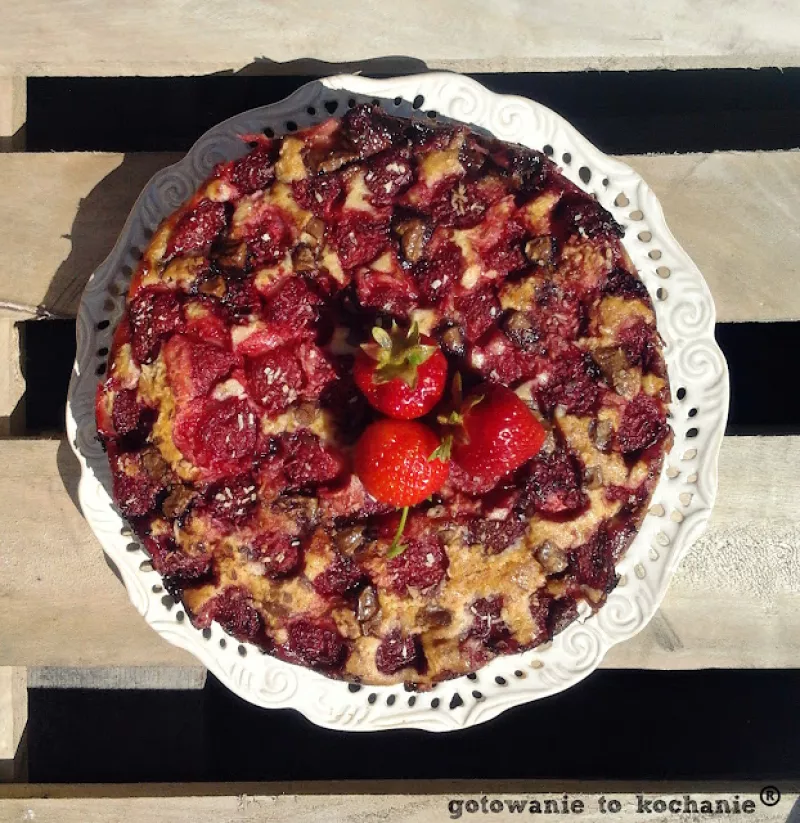 Szybki biszkopt z truskawkami i czekoladą na każdą imprezę