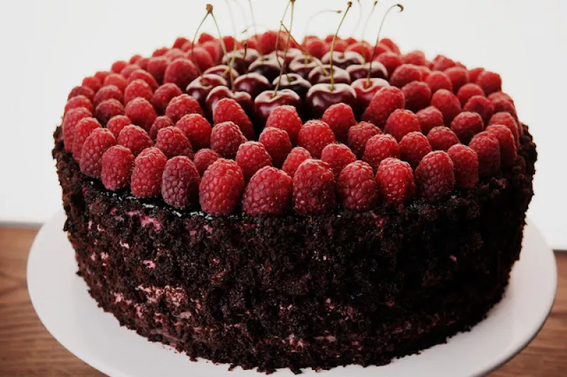 Tort czekoladowy przekładany musem malinowo-kokosowym