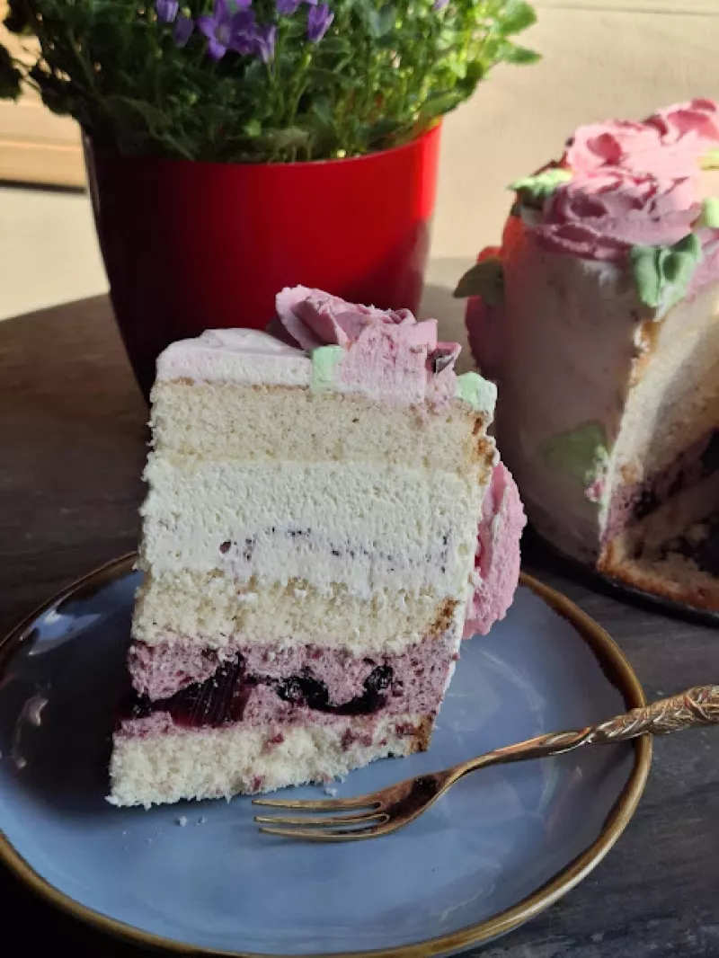 Tort z musem wiśniowym i białą czekoladą – elegancja w każdym kęsieNiektóre desery nie potrzebują opisu – wystarczy spojrzeć, by wiedzieć, że mają w sobie coś wyjątkowego. Ten tort to połączenie puszystego biszkoptu, aksamitnego musu z białej czekolady i intensywnej, lekko kwaskowatej żelki wiśniowej. Każda warstwa to osobna historia, ale razem tworzą idealnie zgrany zespół smaków i tekstur.To ciasto ma w sobie coś nostalgicznego, a jednocześnie eleganckiego. Kremowe, delikatne, z wyraźną nu...