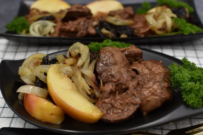 Źródło: https://www.kulinarnachwila.com/2025/04/watrobka-drobiowa-z-cebulka-i-sliwkami.html