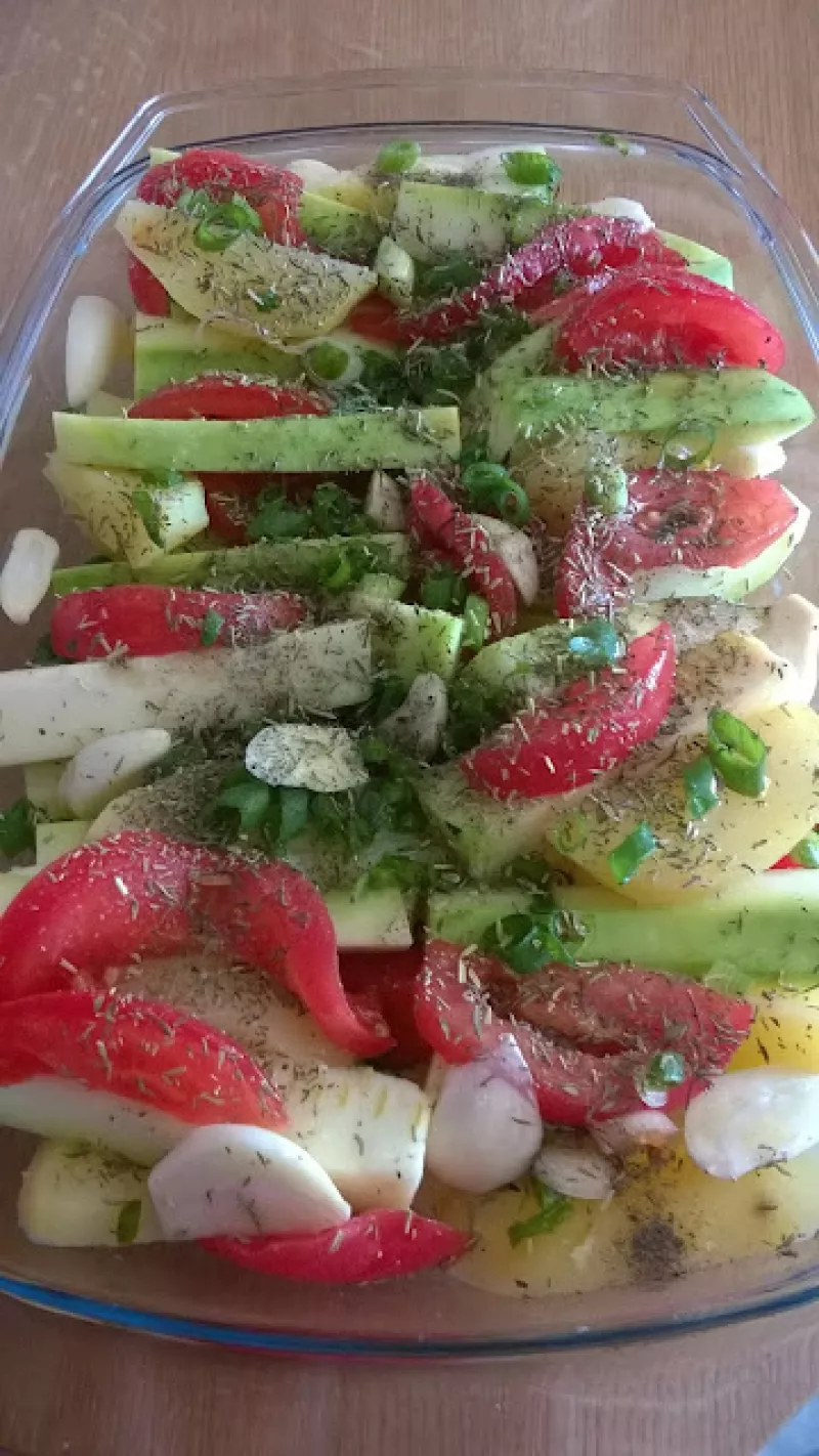 Jednym z moich ulubionych warzyw są cukinie. W związku z tym bardzo często goszczą na moim stole. Tym razem znalazły swoje zastosowanie w zapiekance z innymi warzywami. Jest to szybka i prosta w przygotowaniu potrawa. Składniki: 1 duża cukinia 4 średniej wielkości ziemniaki 3-4 ząbki czosnku 2 duże pomidory Sól, pieprz zioła: tymianek, oregano, rozmaryn lub inne ulubione 1/2 szklanki bulionu warzywnego /kostki odrobina oliwy z oliwek opcjonalnie: można posyłać szczypiorkiem Przygotowanie: C...