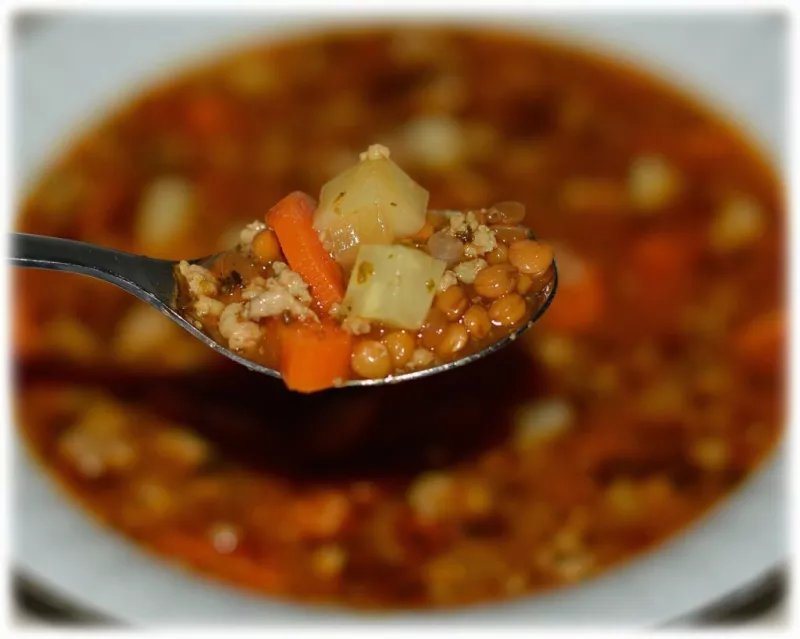 Zupa z mielonym mięsem i soczewicą